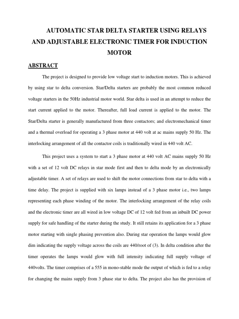 This drawing has two circuir. The project is designed to start a 3 phase motor at 440 volt ac. The automatic star delta starter using relays and microcontroller as timer device is a standalone system that is capable of switching the motor from star to delta mode of operation to keeping the system functioning properly. Automatic star delta starter design normally consists of three contactors, an overload relay or circuit breaker, and a timer for setting the time in the star position (starting Star delta starter wiring diagram 3 phase with timer. As you see in the above star delta starter diagram, first, an nc push button switch is connected to stop the operation. Measure time taken for it to • mount starter on a vertical wall / plate free from A star delta starter system is the most commonly used for the starting of a three phase induction motor. Ne555 timer in automatic star delta starter : Pin number 8 is used for star and 9 for delta connection. First start the motor by pressing the 'on' button as indicated in fig. In star mode, the lamps would glow dim and in delta mode operated by timer it will glow with full intensity. • 20 transistors, two diodes, and 15 resistors on a silicon chip.